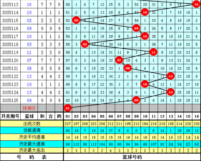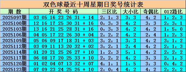 蓝球走势分析:上周日第25123期蓝球开出号码10,最近十周日曜日蓝球号码大小比为6:4,奇偶比为2:8,012路比为1:7:2。本期蓝球提议侧重奇数号码,参考蓝球01、03。